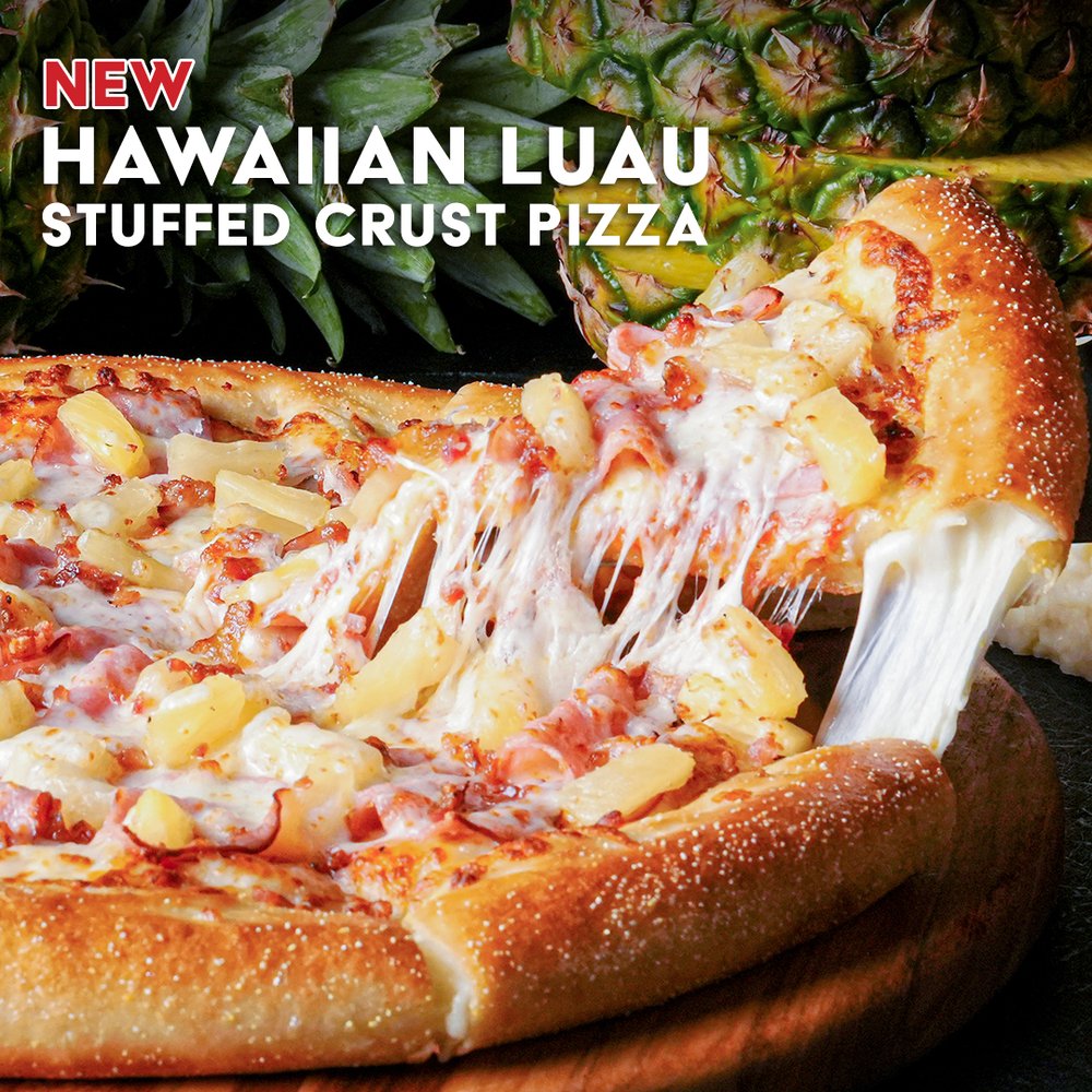Signature red tomato sauce on our Signature Stuffed Crust, topped with 100% whole milk mozzarella, Canadian-style bacon, applewood-smoked bacon, juicy pineapple chunks, and extra mozzarella.